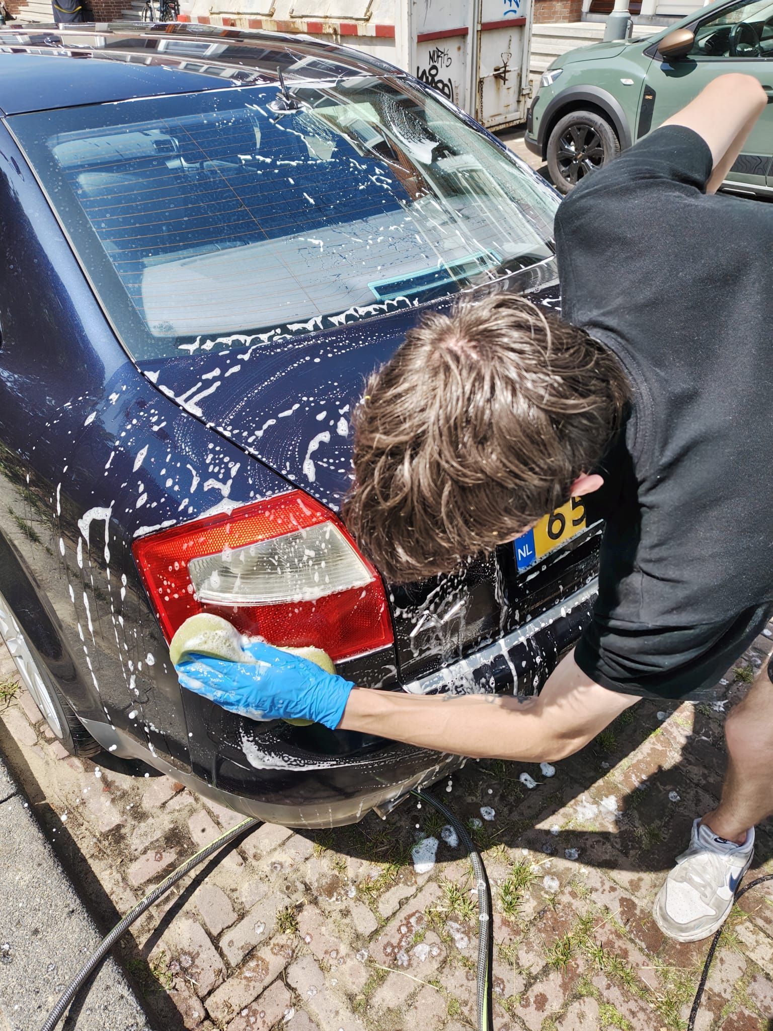 - de auto wordt grondig met de hand gewassen en duiken de voorgril in om die helemaal te gereinigd met een borstel incl. tankdop zodat we zeker niks missen.